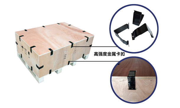 首耐得卡扣箱,使用高强度金属制件将胶合板连接而成.卡扣箱除了保留传统木质包装箱的特性外,还具有免工具便捷拆装,重复使用,可折叠,可堆叠,成本低,美观,提升产品档次等很多特性,一经面市就受到了广大客户的青睐。首耐得包装箱可以折叠运输,无需任何工具就能很容易的组装起来,折叠后体积不到原先的20%,厚度大约170-220mm,最小体积几乎等同于一个底托盘的大小。紧凑的尺寸降低了空间,并允许更多的木箱在一个运输单位内传递,从而降低物流成本及仓储成本。
